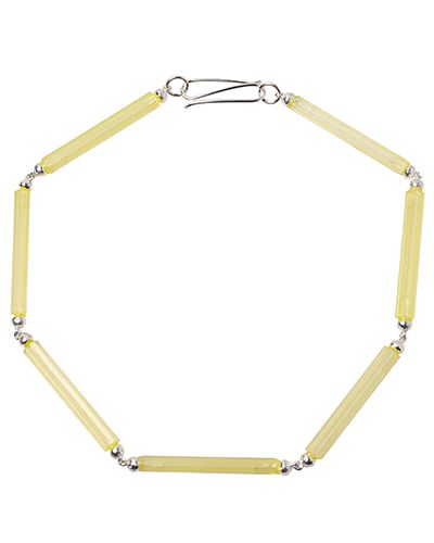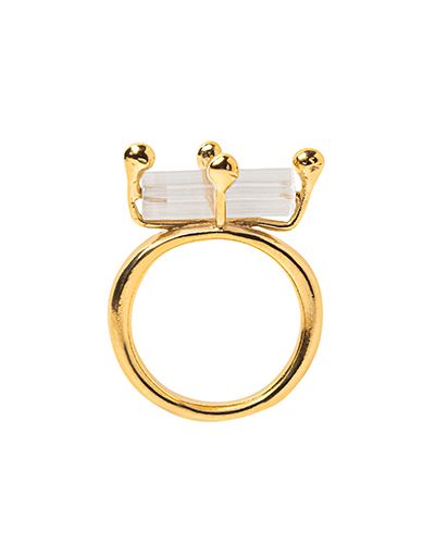 Anillo de plata engastado con cristal satinado en tono amarillo pálido.