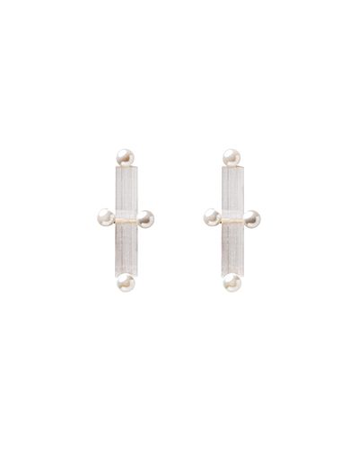 Anillo de plata bañada en oro engastado con perlas del Pacífico que al llevarlo puesto recuerda a un piercing. Para un efecto más dramático, recomendamos combinar varios anillos en la misma mano.