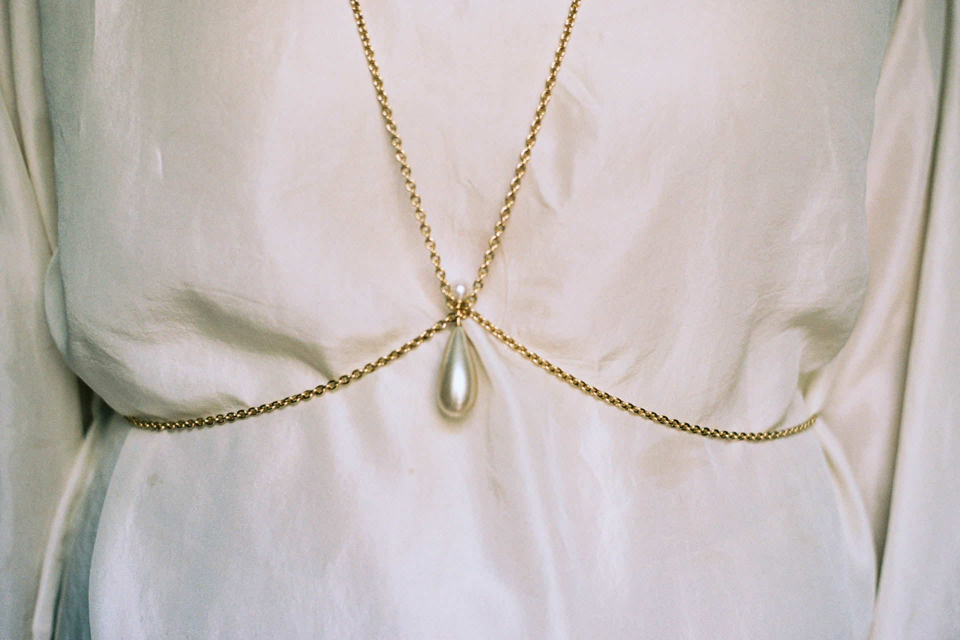 Este set trasformable incluye dos cadenas bañadas en oro y un cierre de perla de agua dulce y perla con froma de lágrima del Pacífico Sur, hecho en plata bañada en oro. La pieza con las perlas puede llevarse por separado como pendiente o junto a las cadenas como un arnés, mientras que las cadenas ofrecen múltiples opciones: como cadena para el cuerpo, collar o cinturón, permitiéndote pasar de un look a otro sin esfuerzo. Una pieza versátil que equilibra elegancia y funcionalidad con un toque contemporáneo.