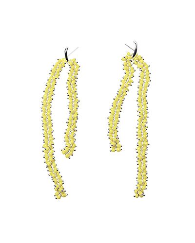 Collar de cadena bañada en plata con cuentas de cristal amarillo engastado con una rosa natural preservada. La rosa es una flor natural tratada con un líquido de conservación biodegradable y de origen vegetal, sin ingredientes tóxicos.