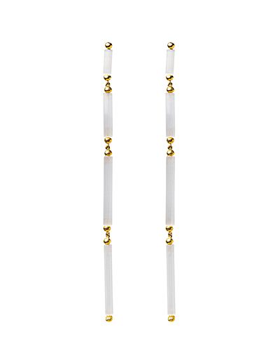 Collar elaborado en plata bañada en oro con cristales satinados en tono ópalo.