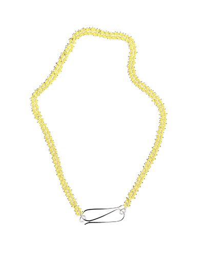 Pendientes de cadena bañada en plata con cuentas de cristal amarillo repartidas a lo largo del diseño. La parte que está en contacto con la piel está realizada en plata de ley bañada en oro.Se venden por pareja. Longitud: 10cm.