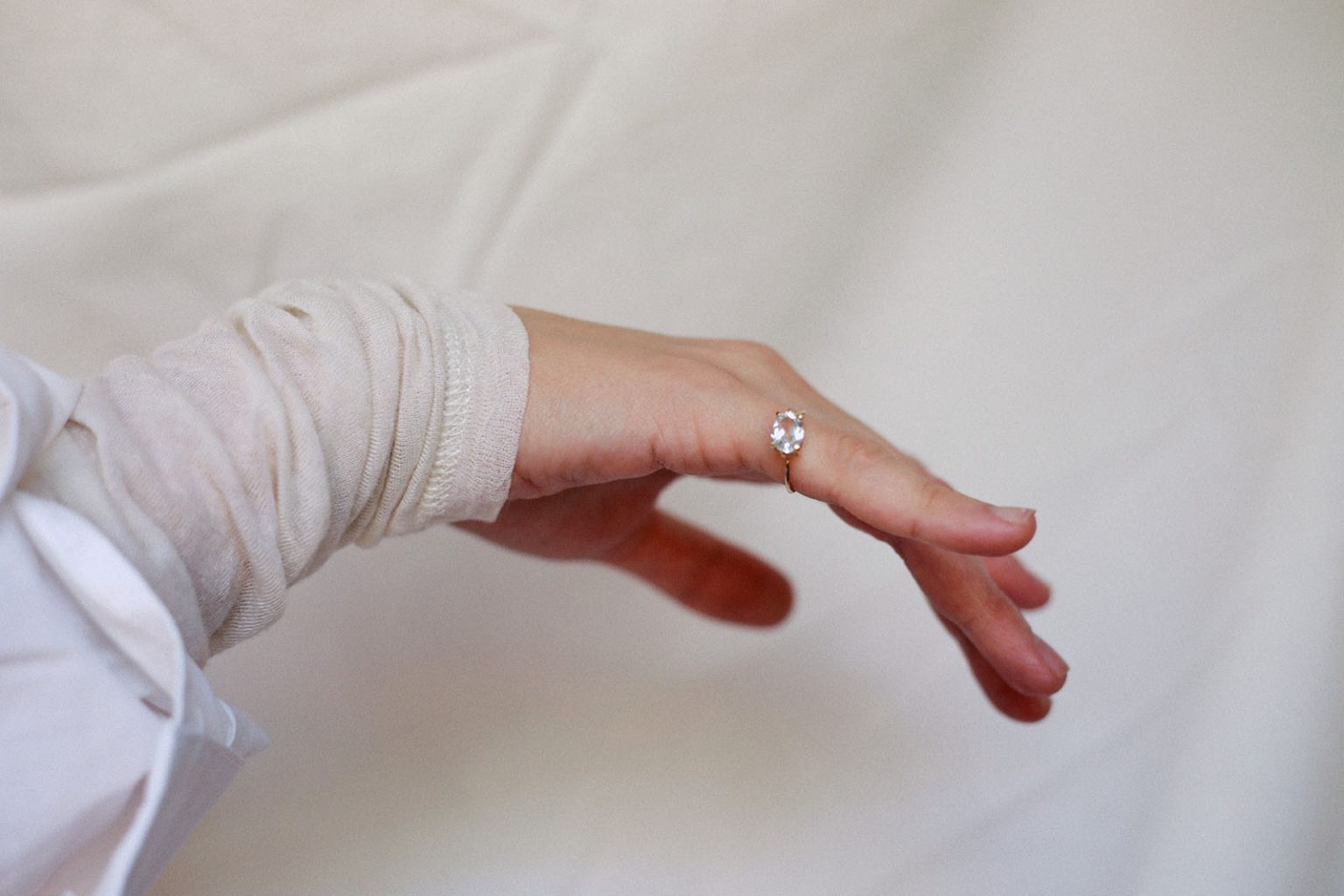 Anillo en plata chapada en oro con un topacio blanco oval engastado.