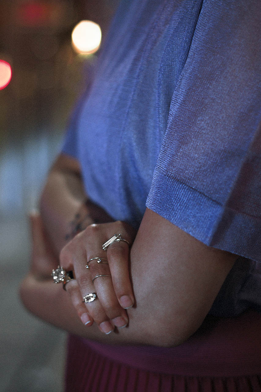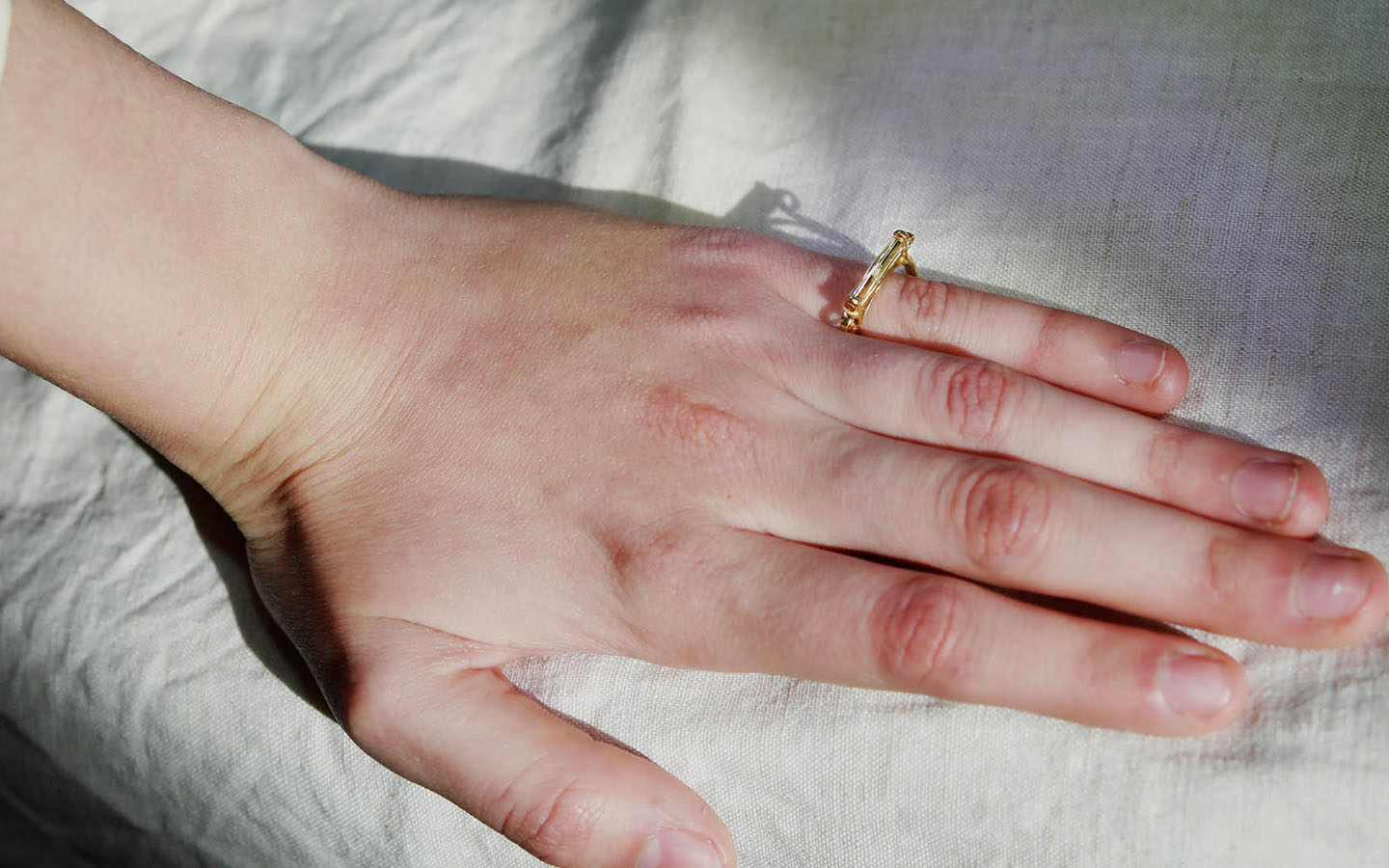 虹色ヴィンテージガラスをセットした、ゴールドメッキのシルバーリング。