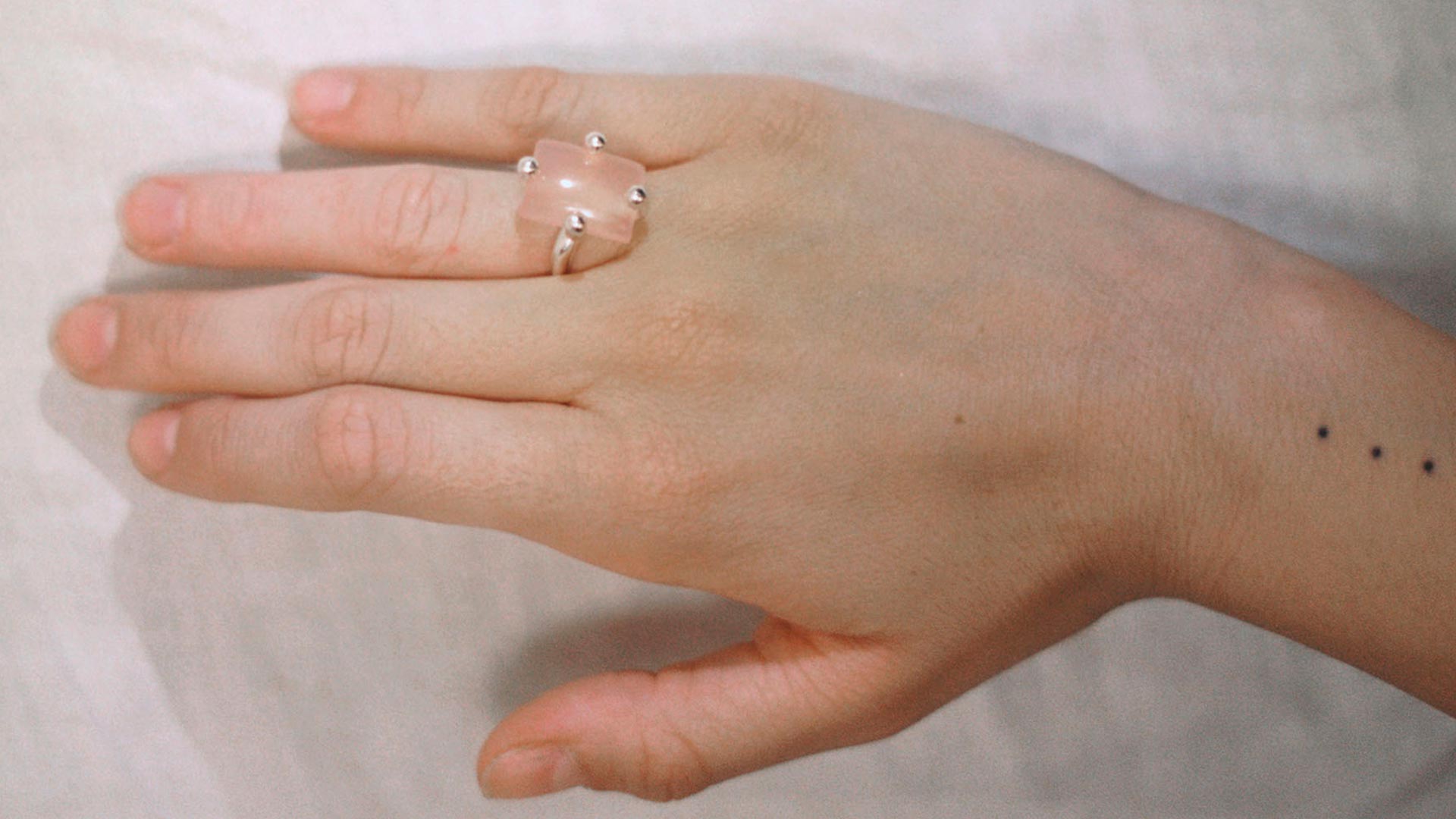 Sterling silver ring set with a 16×12 mm pink chalcedony.