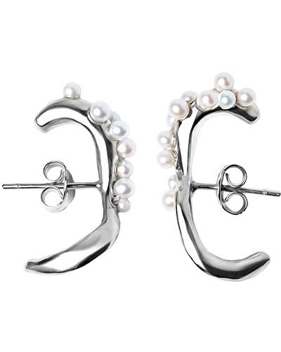 The Wave Earrings are crafted in sterling silver, featuring an organic, flowing shape. Their sculptural design adds a natural yet bold touch, Sold as a pair.