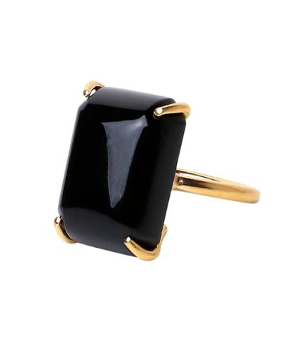 Gold plated silver ring set with black glass.