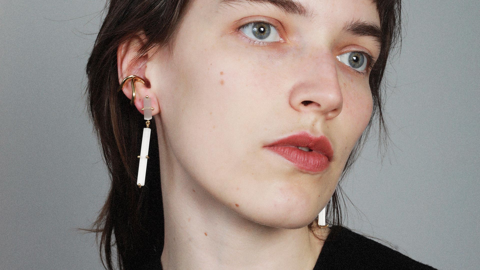 Gold-plated sterling silver earrings set with white satin crystal. Sold as a pair. The length is 6cm.