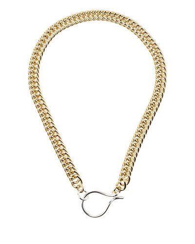 Gold plated silver brass chain bracelet with our signature clasp in silver.