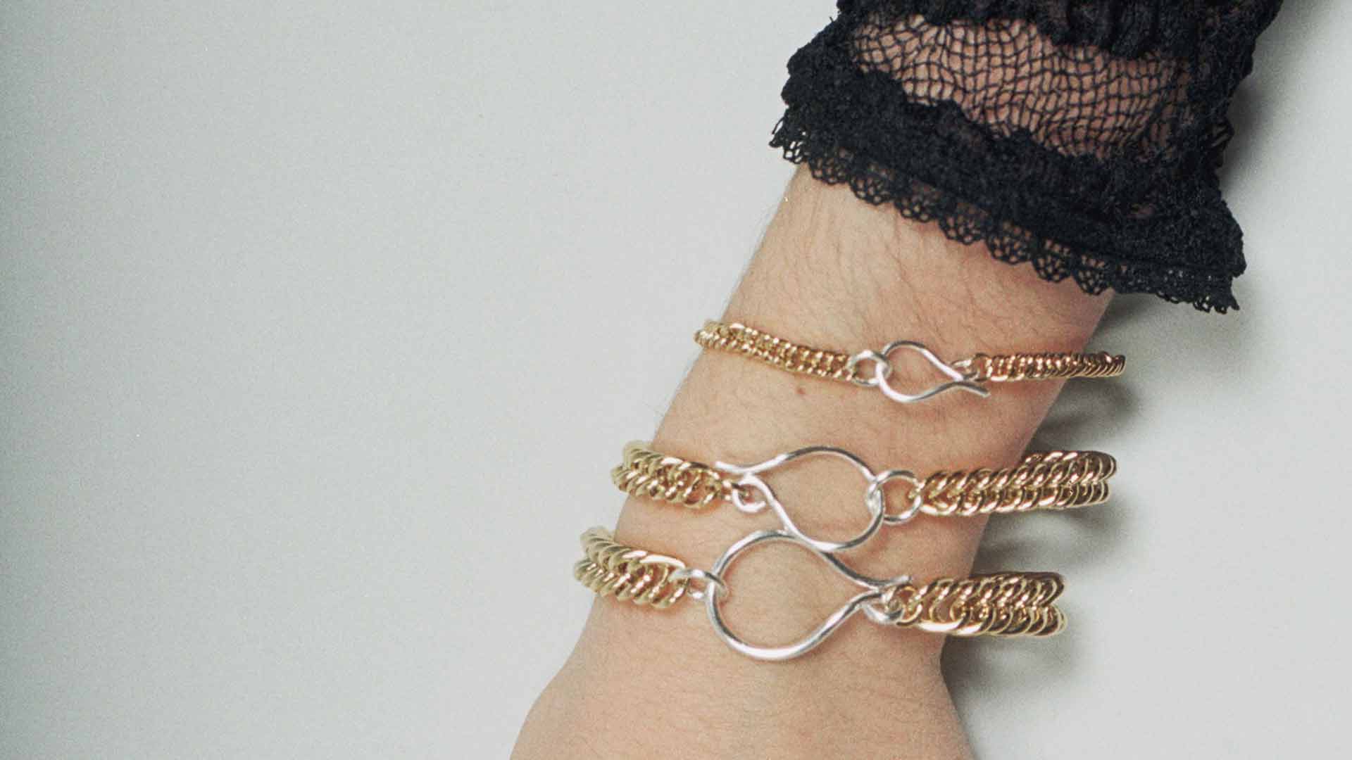 Gold plated silver brass chain bracelet with our signature clasp in silver.