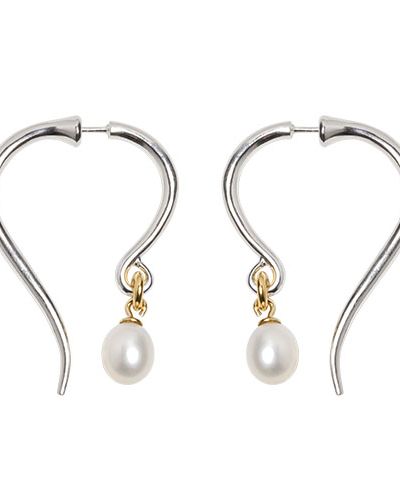Gold plated silver earrings with a dangling baroque fresh water pearl. Sold as a pair.