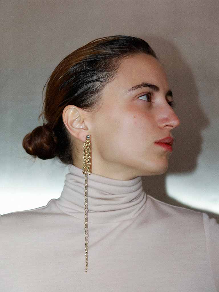 Multifunctional silver ball piece that can be used as both a brooch or an earring. It can also be combined with Piece No.5 and Piece No.6 and serve as a clasp to create a necklace, bracelet, or anklet. You can even add the chain when using it as an earring. The possibilities are endless, and we leave them to your choice for you to play with.