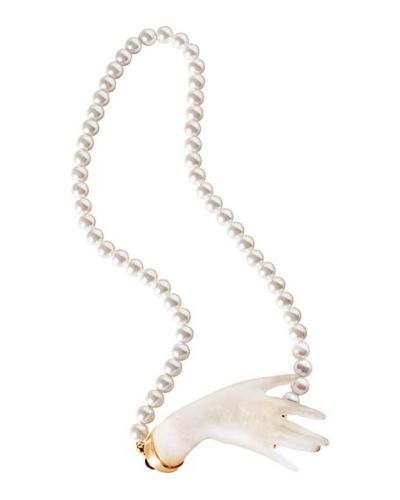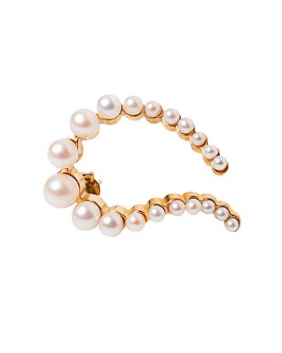 Gold plated silver and 3D printing biocomposite hand earring with gold plated silver nails. The material of the hand is a BIO plastic coming from oyster shells giving the hand a pearled finish. This material is ecofriendly, biodegradable and sustainable.