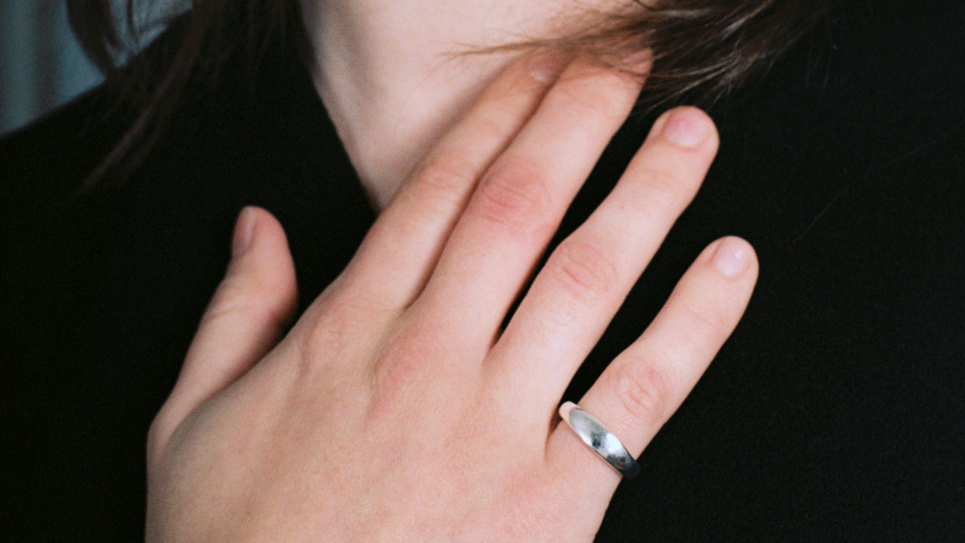 A sculptural sterling silver band with quiet strength. Inspired by timeless forms, it reimagines the classic alliance as something raw, present, and contemporary.