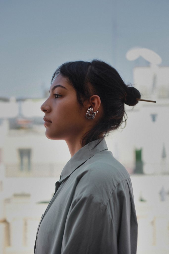Medium ear cuff made out of rhodium plated RECYCLED silver.