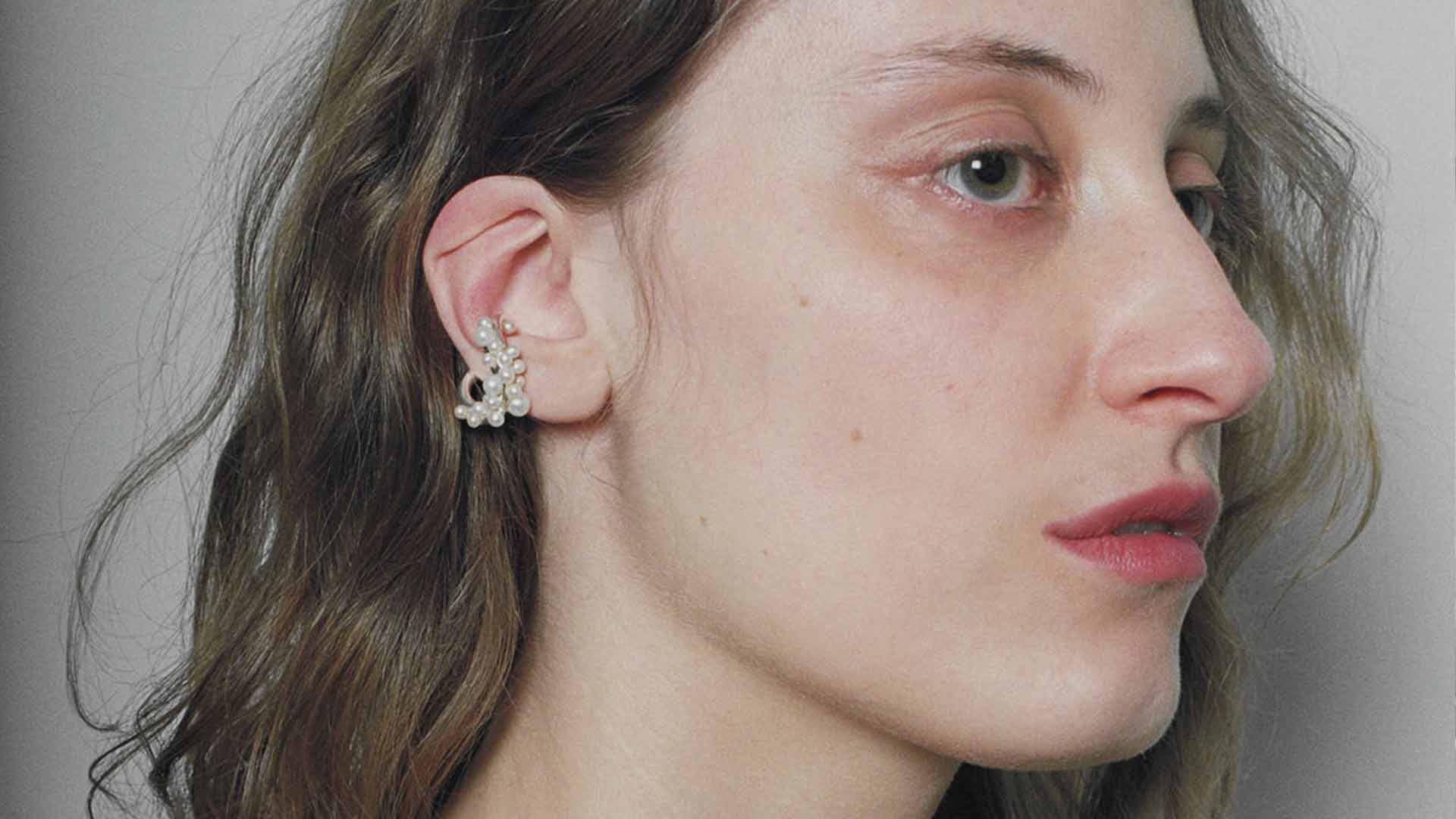 Gold plated silver ear cuff set with a cluster of fresh water pearls. Designed to be worn in the right ear.