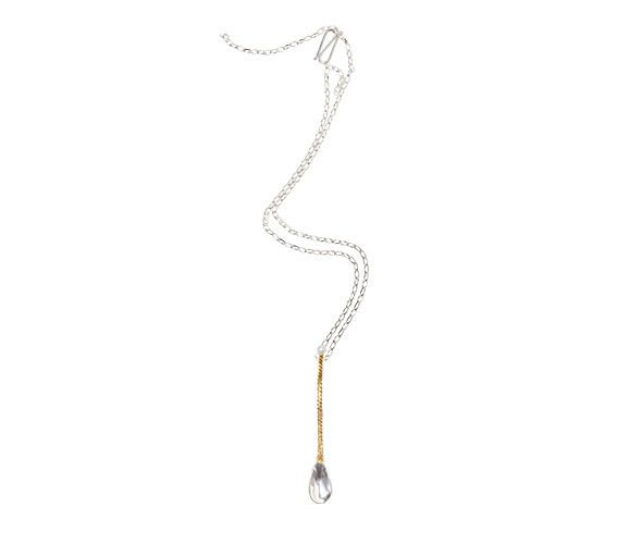 A sterling silver pendant shaped as a mini pillbox, topped with smooth, transparent quartz, hanging from a chain. Its clear surface invites a quiet interaction with whatever you choose to carry, transforming a small object into a subtle, personal statement.