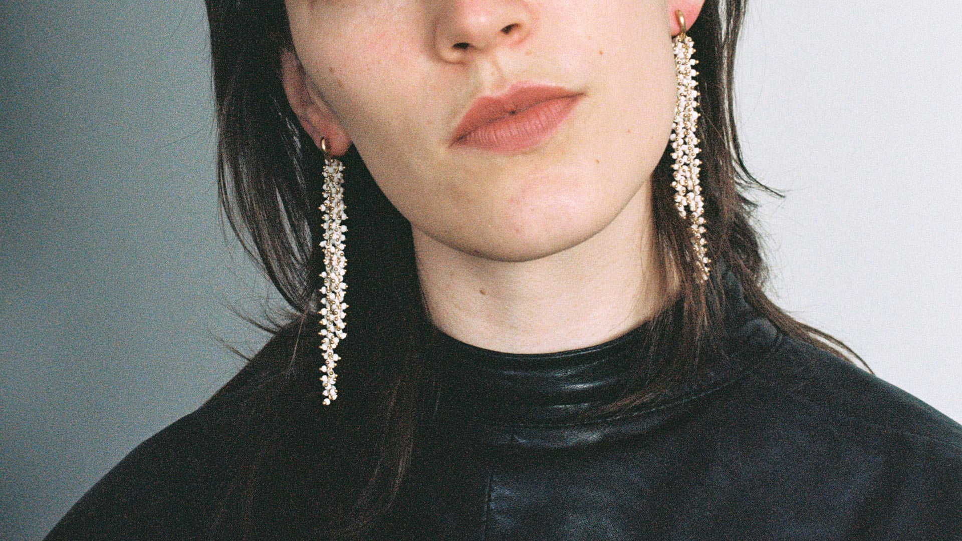 Gold-plated brass chain earrings dotted with white glass beads. Simple yet playful. The part in contact with the ear is crafted in gold-plated sterling silver.