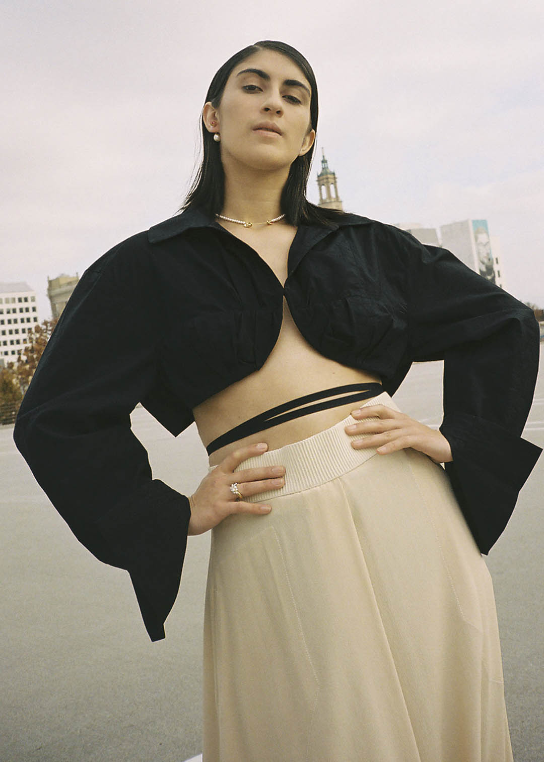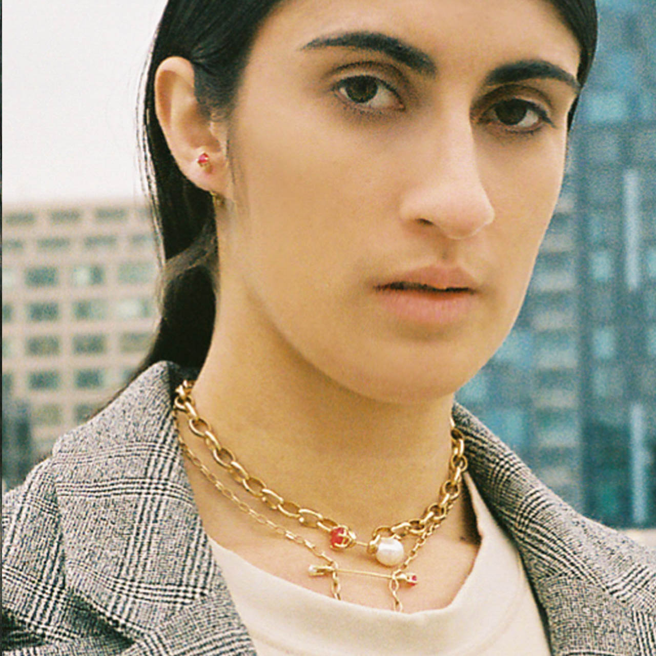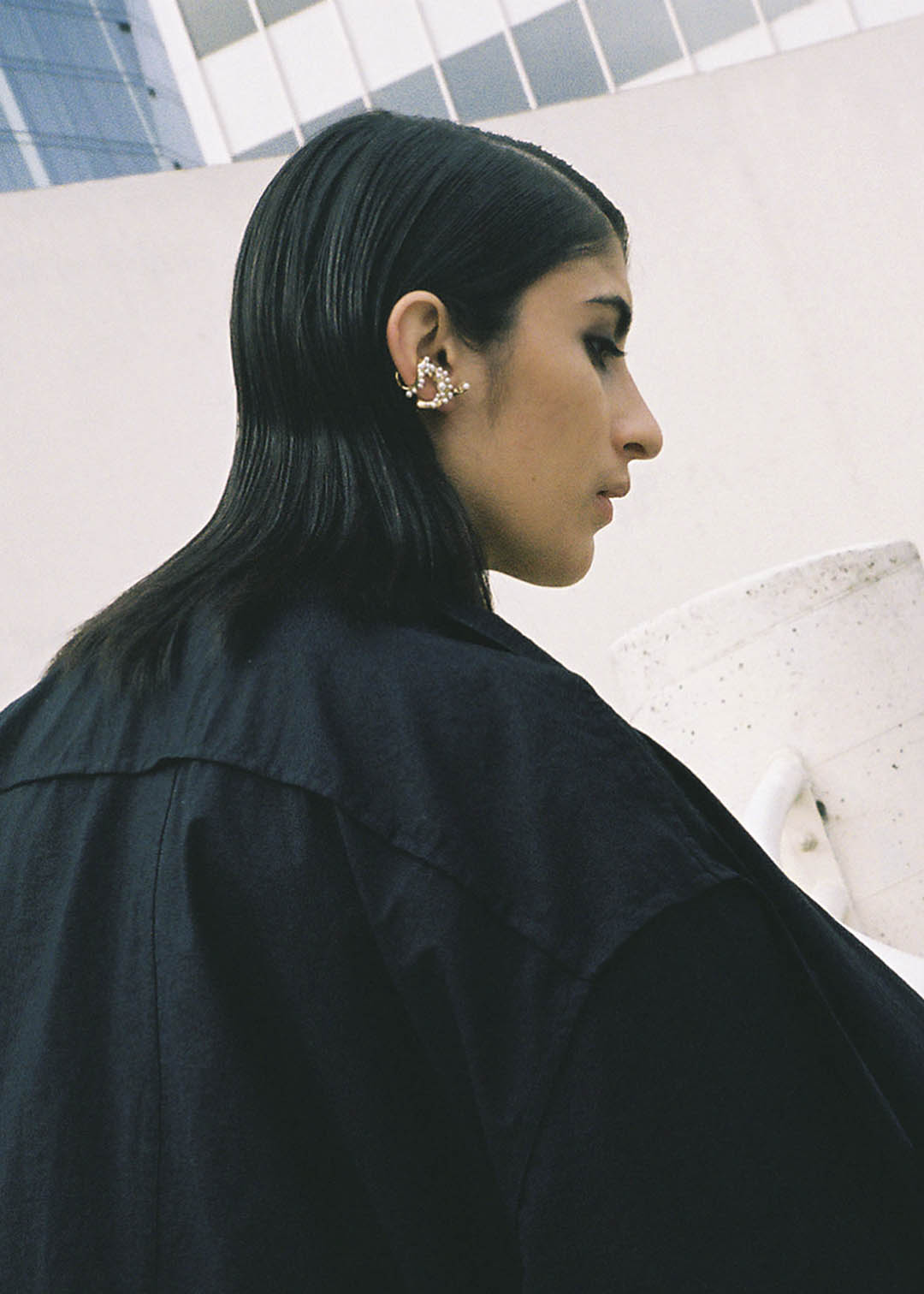 For Fall 2022, we offer a collection of convertible jewelry in which piercings may be worn as earrings, as clasps for necklaces and bracelets, or pierced into drilled-through rings. Each piercing consists of removable ends embellished with pearls or chalcedony which may be detached and reassembled, mixed and matched. Pieces can be combined and configured in various ways, offering freedom to create your own personal combinations. Create what you desire.