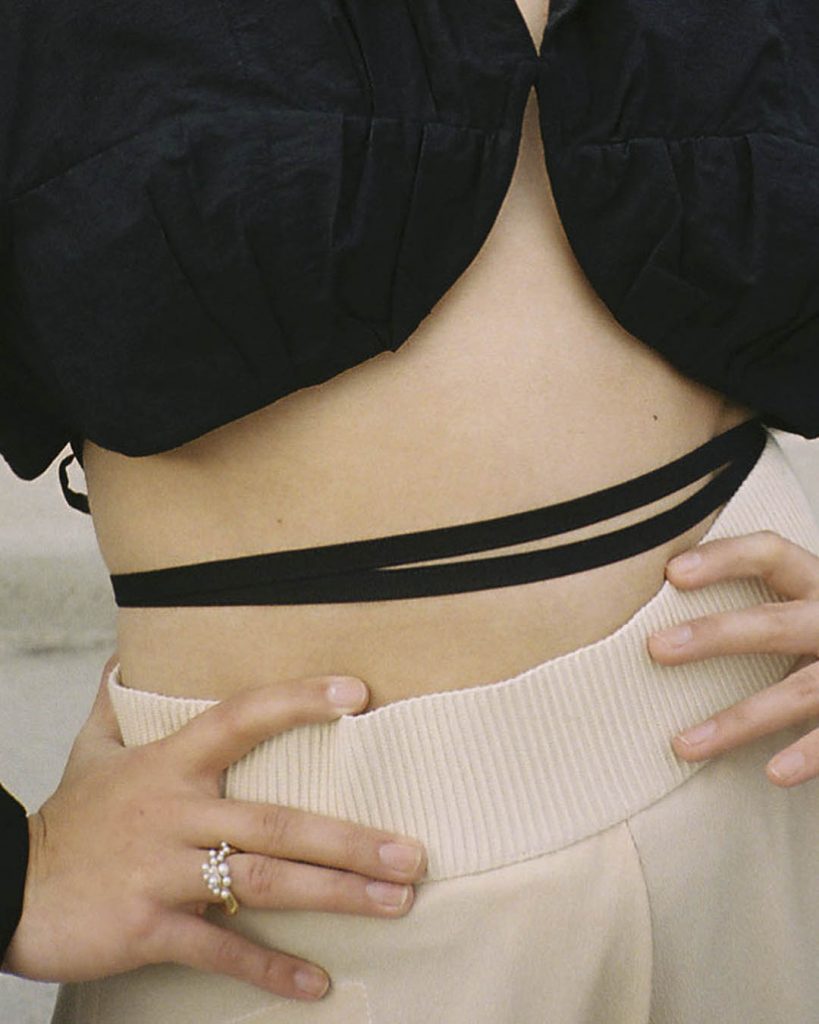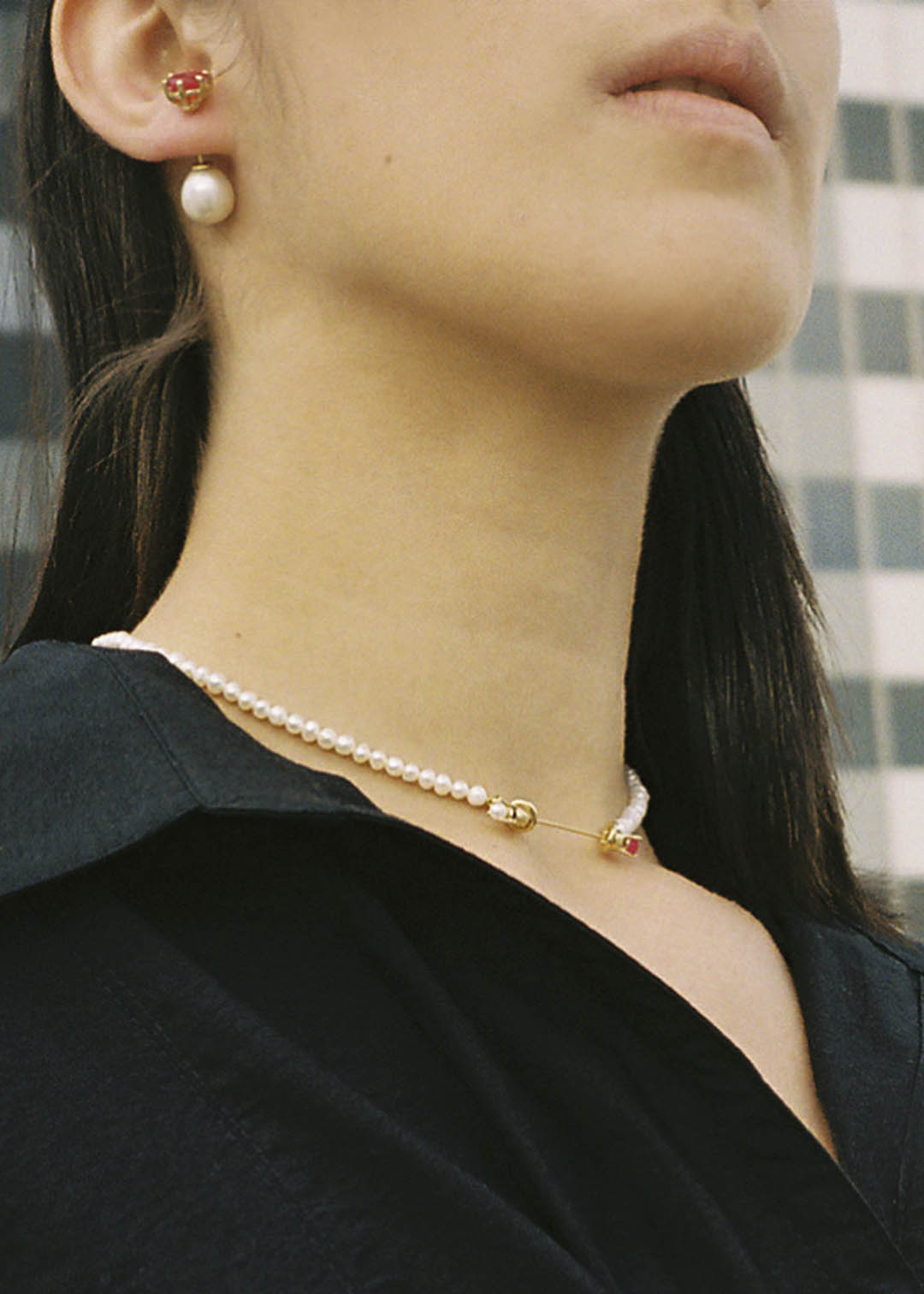 For Fall 2022, we offer a collection of convertible jewelry in which piercings may be worn as earrings, as clasps for necklaces and bracelets, or pierced into drilled-through rings. Each piercing consists of removable ends embellished with pearls or chalcedony which may be detached and reassembled, mixed and matched. Pieces can be combined and configured in various ways, offering freedom to create your own personal combinations. Create what you desire.